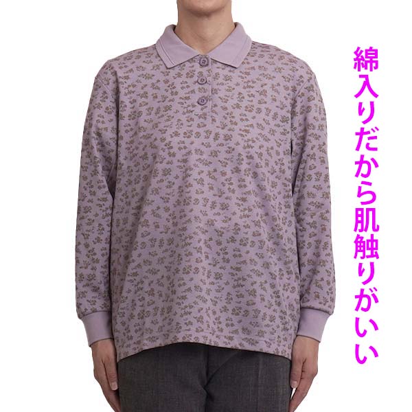 シニアファッション レディース ポロシャツ 長袖 花柄 シニア 女性 婦人服 60代 70代 80代 高齢者 おばあちゃんの服 春 秋冬 大きいサイズ ギフト 5720