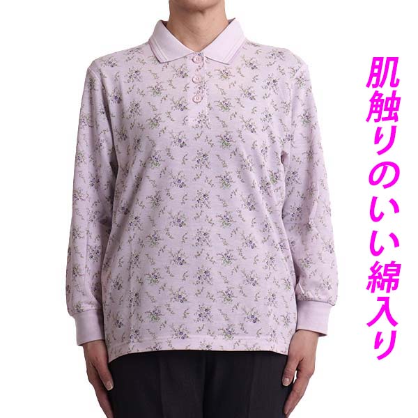 シニアファッション レディース ポロシャツ 長袖 花柄 シニア 女性 婦人服 60代 70代 80代 高齢者 おばあちゃんの服 春 秋 大きいサイズ ギフト S M L LL