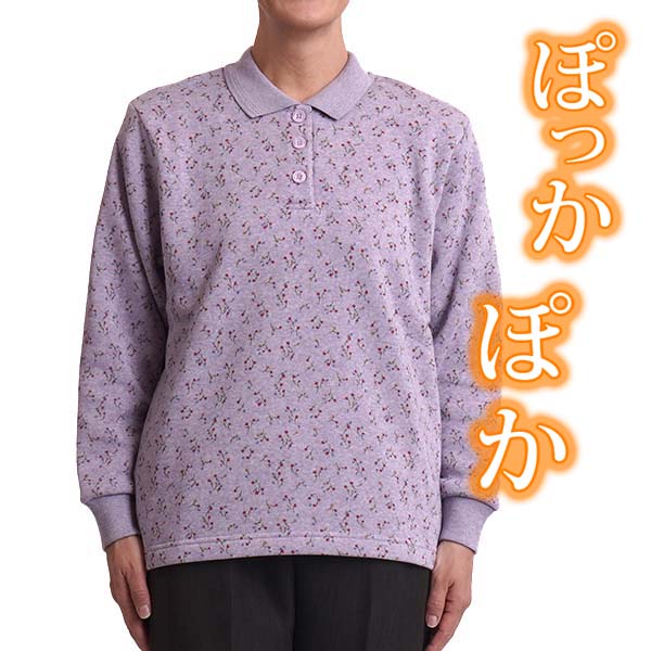 シニアファッション レディース ポロシャツ 長袖 裏起毛 シニア 女性 婦人服 60代 70代 80代 おばあちゃんの服 秋冬 防寒 大きいサイズ Sサイズ LL
