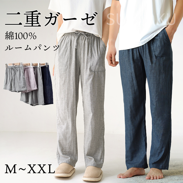 XXLサイズ追加 スイモク 綿100% ルームパンツ パジャマ ルームウェア ショートパンツ メンズ レディース コットン 夏 長ズボン 短パン オールシーズン
