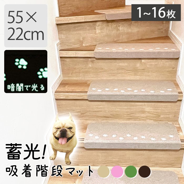 13枚セット 蓄光 階段マット 吸着 55×22cm フリーカットOK 階段 肉球 カーペット 防音 キズ防止 滑り止めマット 洗える 水洗い シニア犬 G329