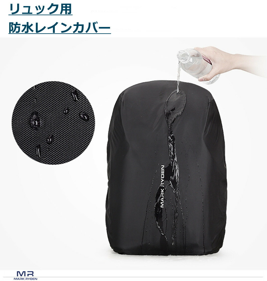 リュックカバー 防水 レインカバー 撥水 バックパック 雨除け アウトドア 通勤 通学 サイクリング ツーリング キャンプ 登山 ハイキング 雨対策 ランドセルカバー ブラック Black コンパクト 持ち運び MARK RYDEN MR8012