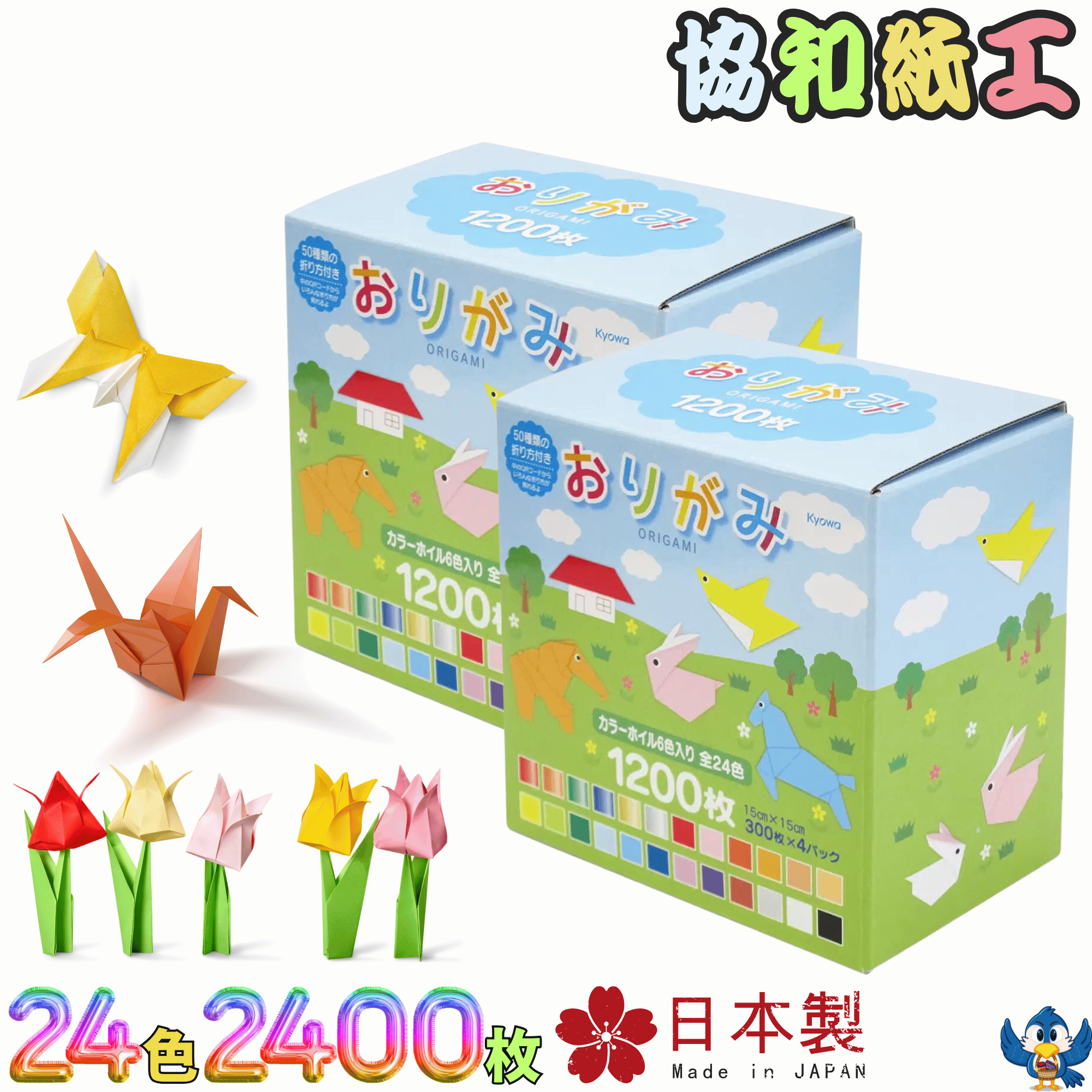 折り紙 おりがみ セット 24色 1200枚 x 2箱 15cm角 日本製 協和紙工 色紙 大量 工作 折り方 コストコ