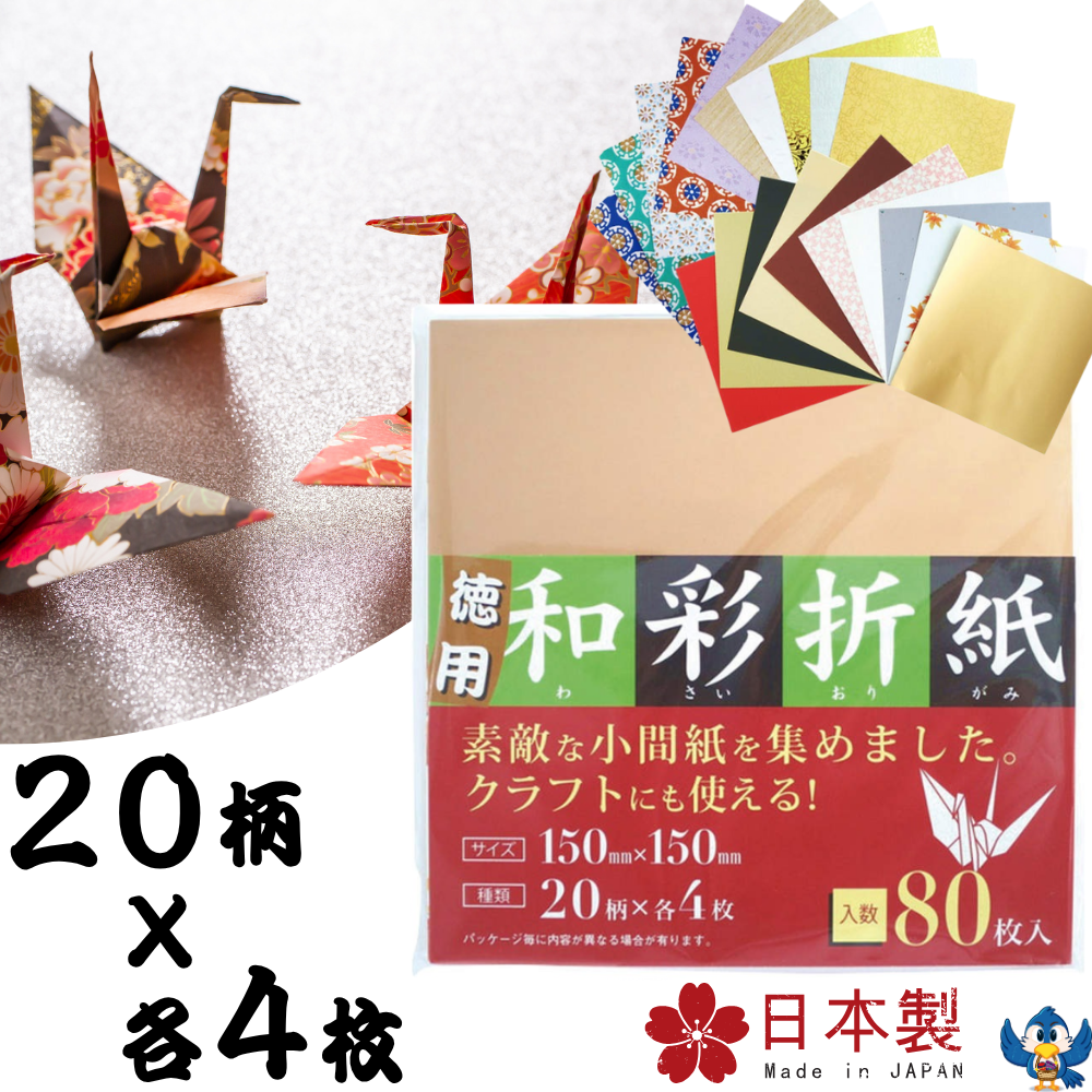 折り紙 おりがみ セット 20柄 x 各4枚 合計80枚 15cm角 日本製 和紙 和柄 色紙 飾り クラフト 知育 工作 折り方 大量 大容量 徳用 ギフト プレゼント