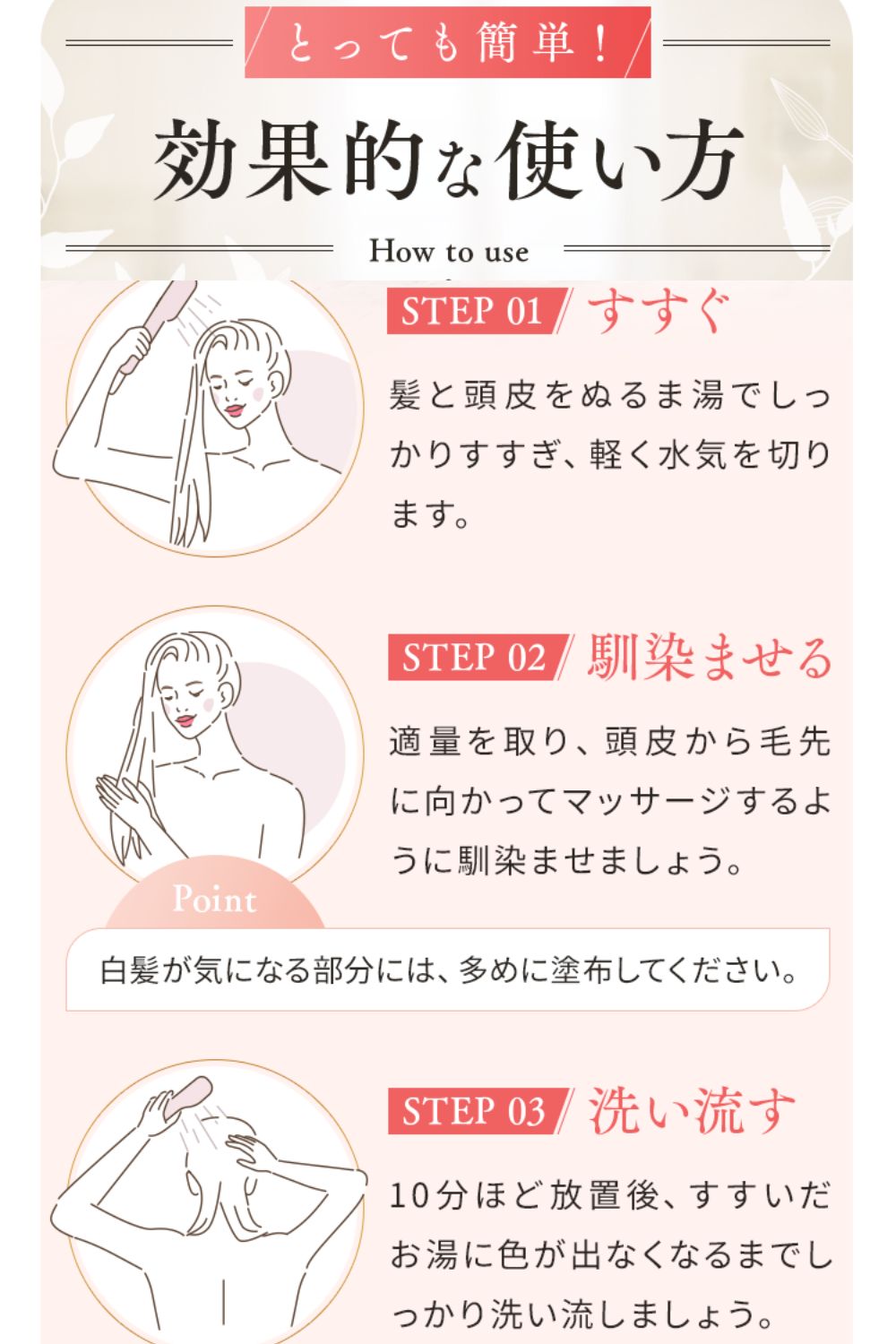 ・シャンプーするだけで自宅で簡単に白髪ケアができる