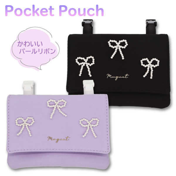 移動ポケット 女の子 ポケットポーチ マルチポケット パールリボン (ZC24532) クリップ 付けポケット キッズ 子供 こども 小学生 幼稚園 おしゃれ かわいい