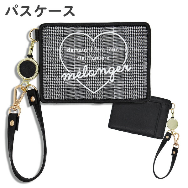 パスケース 定期入れ リール付き チェック×ハート(C05403-グレンチェック) かわいい おしゃれ 女の子 高校生 中学生 小学生 子供 キッズ レディース