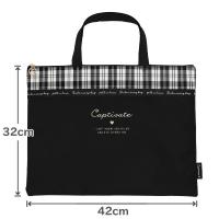 レッスンバッグ ファスナー付き チェック×ブラック(C00730) 軽量 レッスンバック 手提げバッグ お稽古バッグ かわいい 女の子 小学生 小学校 キッズ 子供