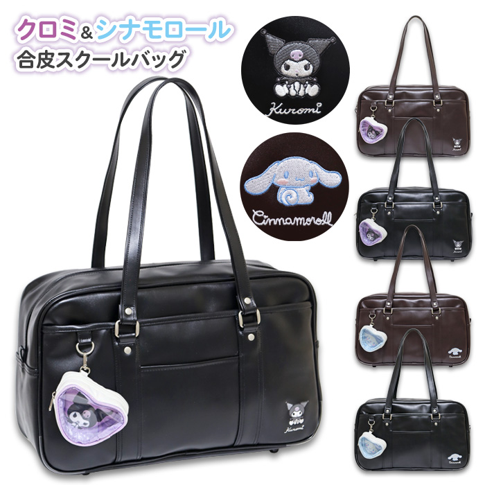 スクールバッグ 合皮 高校生 女子 女子高生 サンリオ クロミ シナモロール ポーチ付き 黒 茶色 ボストン スクバ スクールバック 大容量 おしゃれ かわいい