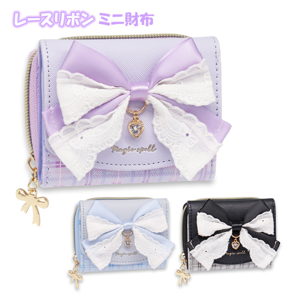 財布 三つ折り ミニ財布 女の子 レース リボン (WC25081) サイフ おしゃれ かわいい 可愛い 小学生 中学生 女子 キッズ 子供 こども コンパクト 小さめ 小さい