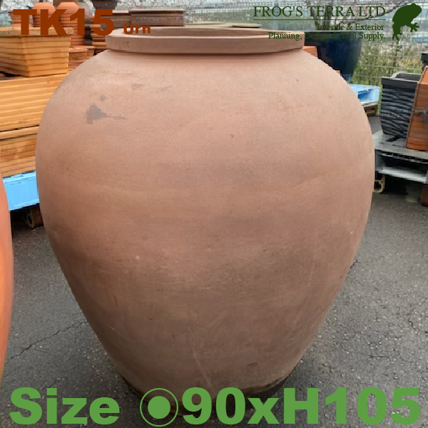 素焼壺 TK15-TE-S(直径90cm×H105cm)(底穴なし)(和風/陶器/こげ茶/アジアン/壺/水鉢)