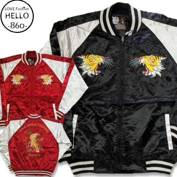 スカジャン メンズ サテン 和風 和柄 横須賀ジャンバー 大阪イカチー系寅柄薄手スカジャンが登場!!コーデに使いまわし抜群!フロントにも刺繍をあしらいクールなデザインにしあがってます!ビンテージジーンズなどのデニム系にも相性バッチリ!春秋を主にオールシーズンにオススメの1着です!