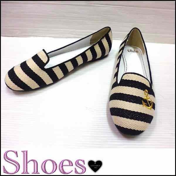マリン錨刺繍ボーダー柄 オペラパンプスシューズ ベロア 靴 レディース アウトレット /mig103-onlyshoes