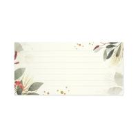 【仕様】●内容 36枚入り・罫線あり・2柄各18枚●サイズ 82x170mm●森林認証紙使用セイヨウヒイラギが目を引くデザインの一筆箋。お祝いのお礼や新しい出会い、家族への近況報告など様々な冬のシーンにぴったり!季節感をひと足早く味わえるデザインです。同柄を使用した便箋や封筒、はがき箋も展開しています!