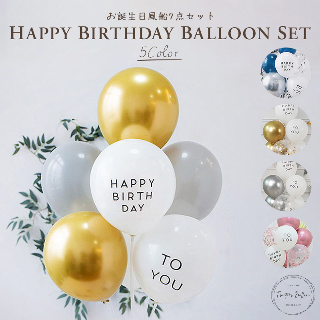 商品紹介HAPPY BIRTHDAY BALLOON SETお誕生日風船7点セットこちらの商品はぺたんこ配送(ヘリウムガスなし)浮かない状態でのお届けとなります。