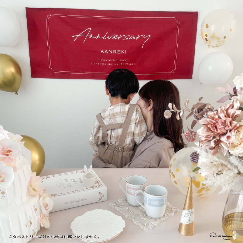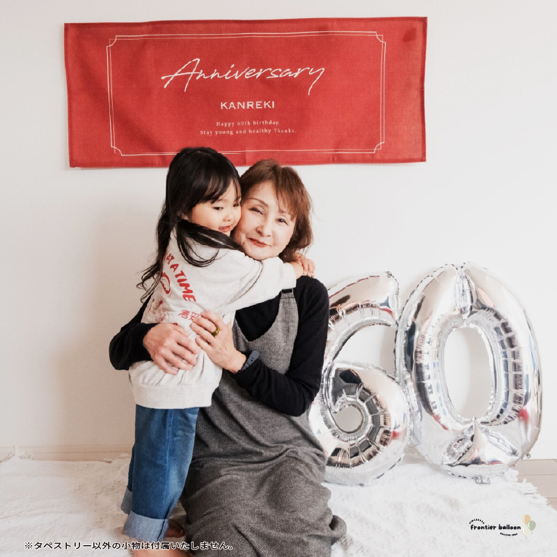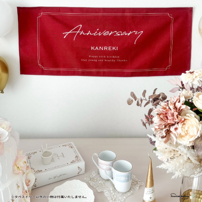 商品について・ナチュラルテイストの還暦タペストリー。どんな飾りつけとも相性ピッタリ