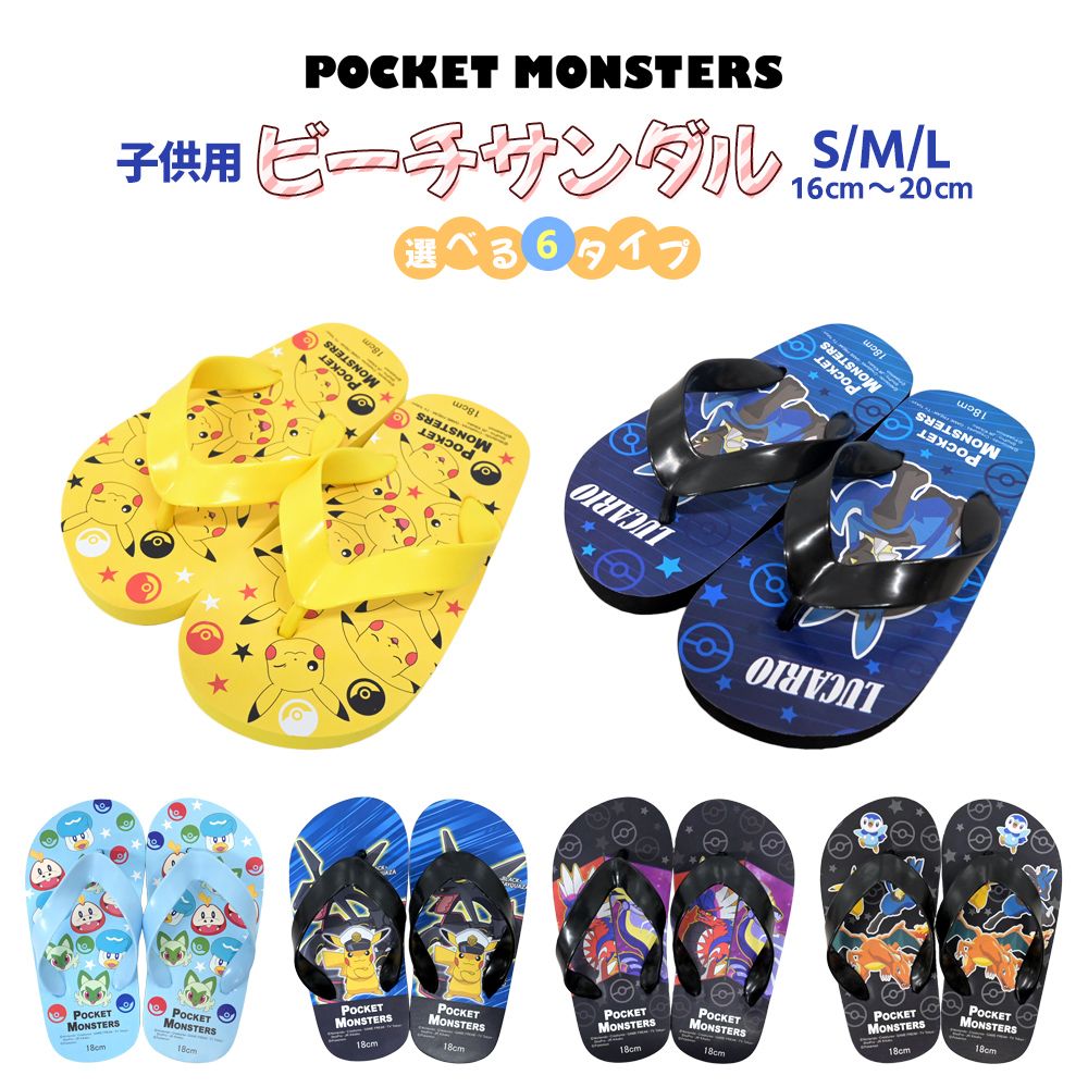 商品紹介ポケットモンスター子供用ビーチサンダル S/M/L 16〜20cm選べる6タイプポケモンからかっこいい&可愛いキャラクターたちが大集合!