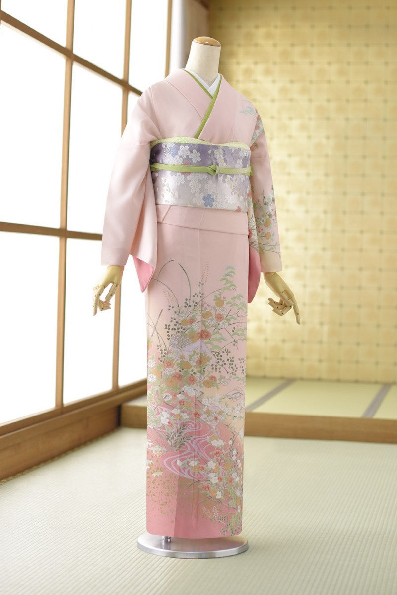 ◆商品情報◆ 訪問着(単衣・ひとえ) 対応身長:154cm〜166cm位 洋服サイズ:7〜13号位 身丈:166.5 裄:70 前幅:24.5 後幅:30.5(単位cm) 素材:合成繊維 ピンク地に四季の花々と色紙が甘美な菜色で描かれた 可憐な上品さがどなたにも好まれる訪問着です。 ※色合いについては環境により多少異なる場合がありますので、 ご了承の上ご注文ください。 ※夏場は快適にお使い頂く為に、長襦袢を夏用にしております。 ご希望がある場合は備考欄へご記入ください。 ◆セット内容◆ 訪問着・袋帯・長襦袢・帯揚げ・帯締め・扇子・えり芯 バック・草履・肌襦袢裾除け・足袋・腰紐5本・和装ベルト 前板・だてじめ2本・帯まくら・重ね衿・専用カバン ◆その他◆ 往復送料無料(北海道・沖縄県・一部離島を除く) レンタル期間は3泊4日となります。(基本ご使用日2日前にお届けとなります。) ※レンタルご利用について詳しくはこちら | ||||||||||||