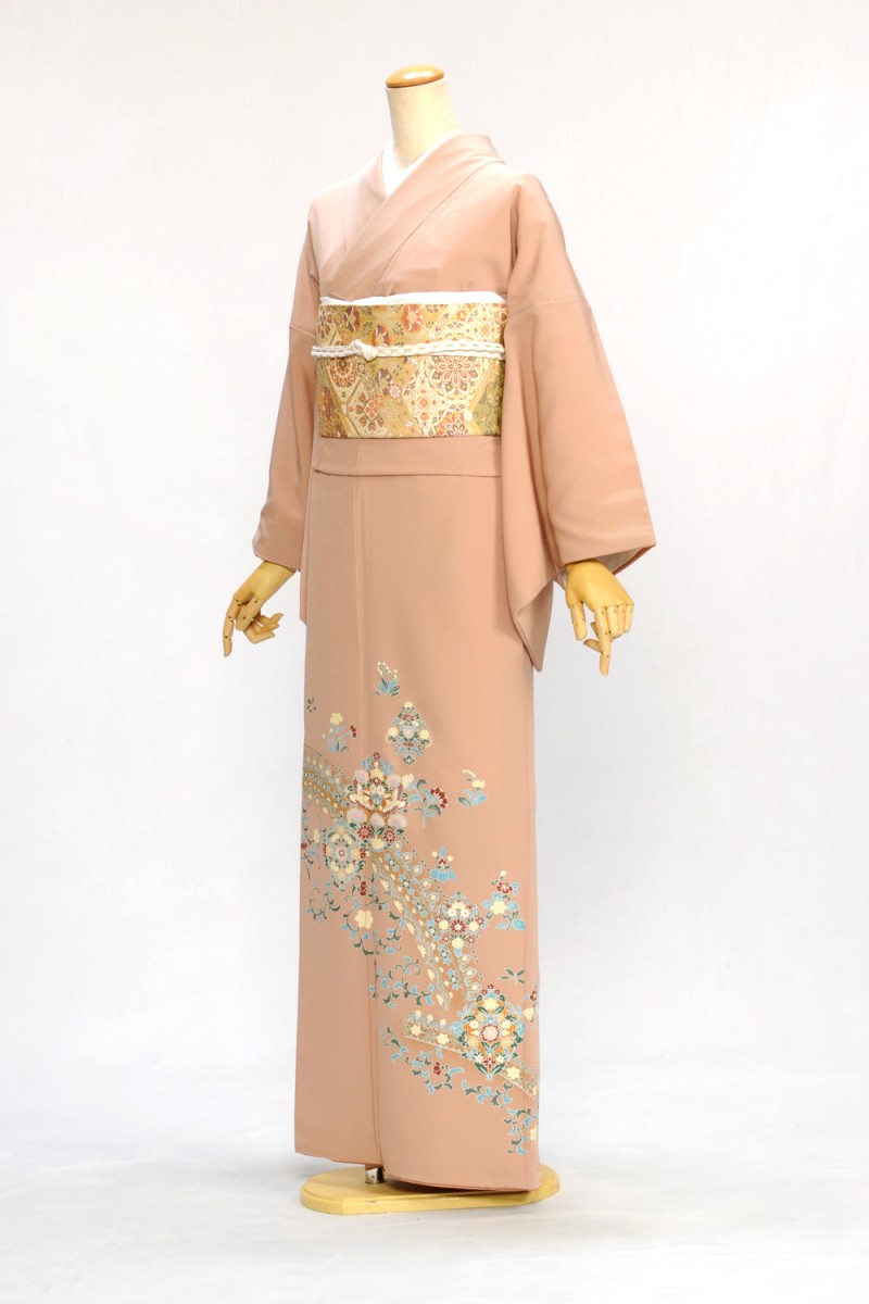 ◆商品情報◆ 色留袖 対応身長:153cm〜165cm位 洋服サイズ:7〜13号位 身丈:165.5 裄:68 前幅:24.5 後幅:30.5(単位cm) 紋:三つ紋 五三の桐 素材:合成繊維 深みのあるベージュ地に古典模様の唐花が 控えめに描かれた上品でたおやかな色留袖です。 ※サイズについてはこちらを参照ください。 ※色合いについては環境により多少異なる場合がありますので、 ご了承の上ご注文ください。 ※夏場は快適にお使い頂く為に、長襦袢を夏用にしております。 ご希望がある場合は備考欄へご記入ください。 ◆セット内容◆ 留袖、袋帯、長襦袢、帯揚げ、帯締め、扇子、えり芯、 バック、草履、肌襦袢・裾除け、足袋、腰紐5本、 和装ベルト、前板、だてじめ2本、帯まくら、専用カバン ◆その他◆ 往復送料無料(北海道・沖縄県・一部離島を除く) レンタル期間は3泊4日となります。(基本ご使用日2日前にお届けとなります。) ※レンタルご利用について詳しくはこちら | ||||||||||||