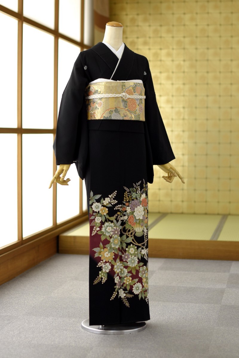 ◆商品情報◆ 留袖 対応身長:157cm〜172cm位 洋服サイズ:9号〜15号位まで 身丈:172.5 裄:71.5 前幅:29 後幅:32(単位cm) 紋:五つ紋 五三の桐 素材:合成繊維 黒地におしゃれなワイン色を挿し色に甘やかな気品を放す花かごの柄行が立ち姿に華の有る留袖です。 ※サイズについてはこちらを参照ください。 ※色合いについては環境により多少異なる場合がありますので、 ご了承の上ご注文ください。 ※夏場は快適にお使い頂く為に、長襦袢を夏用にしております。 ご希望がある場合は備考欄へご記入ください。 ◆セット内容◆ 留袖、袋帯、長襦袢、帯揚げ、帯締め、扇子、えり芯、 バック、草履、肌襦袢・裾除け、足袋、腰紐5本、 和装ベルト、前板、だてじめ2本、帯まくら、専用カバン ◆その他◆ 往復送料無料(北海道・沖縄県・一部離島を除く) レンタル期間は3泊4日となります。(基本ご使用日2日前にお届けとなります。) ※レンタルご利用について詳しくはこちら | |||||||||