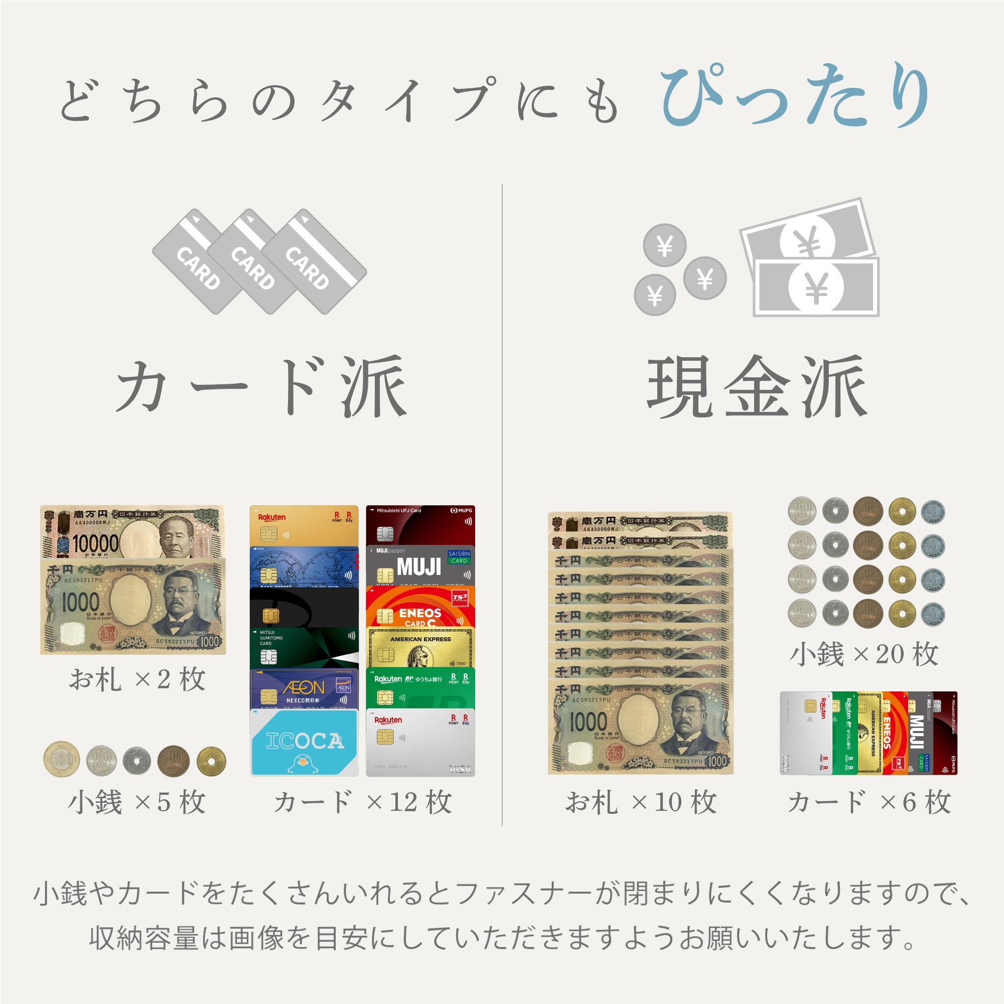 大容量: カードがたくさん収納でき、機能性も高い。