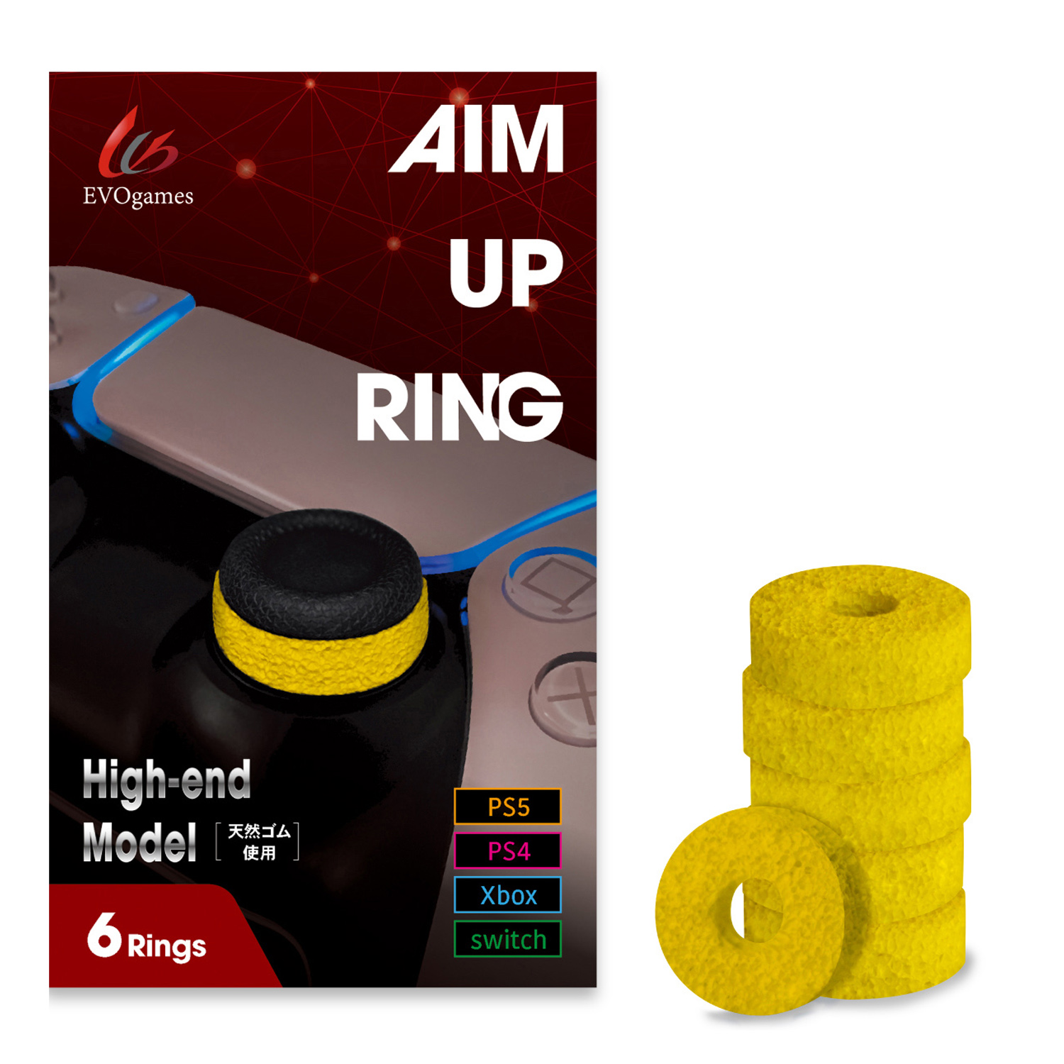 EVOgames エイムアップリング ハイエンドモデル 日本製 高品質 天然ゴム FPS 精密な操作性UP FPS用 6個セット PS5/PS4/Switch/Xbox/PCコントローラー用 送料無料