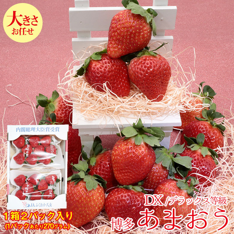 いちご イチゴ 福岡 博多 あまおう 苺 秀品 特大 大粒 2L 以上 1箱 2パック入り 270g 2パック DX デラックス 秀品 ご家庭用 ギフト プレゼント