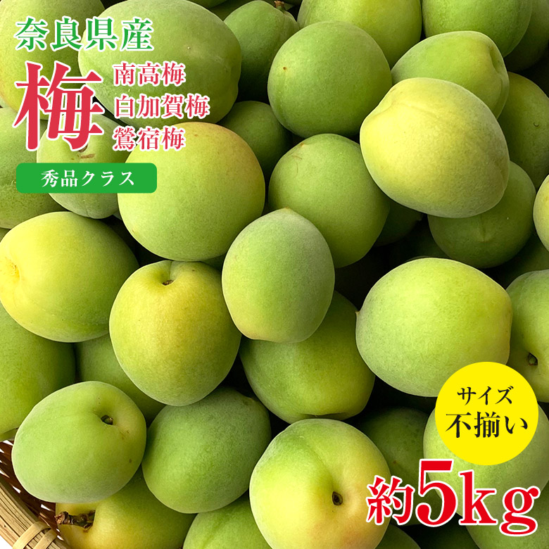 送料無料 秀品 梅 南高梅 白加賀梅 鶯宿梅 奈良県 梅 梅干し 梅ジュース 梅酒 加工用 約 5kg サイズふぞろい 家庭用 ご家庭用 サイズ混合 ワケアリ 傷モノ