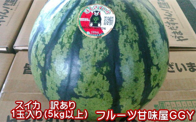 すいか 訳あり サイズM以上(5キロ以上)スイカ 西瓜 熊本産 1玉入り