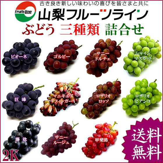 ぶどう 詰め合わせ おまかせ3種類セット 2kg 山梨県産 特産品 産地直送 送料無料一部地域を除く