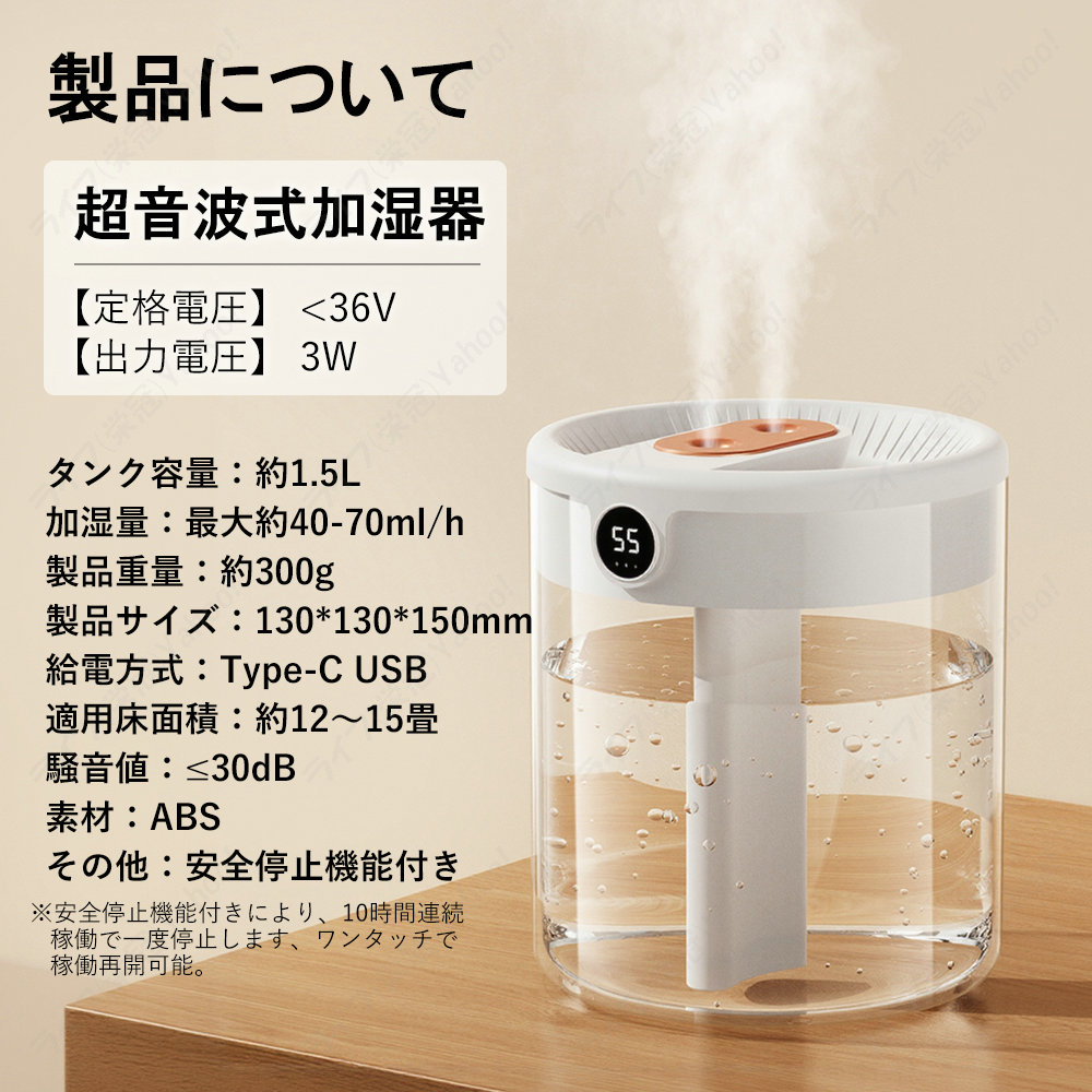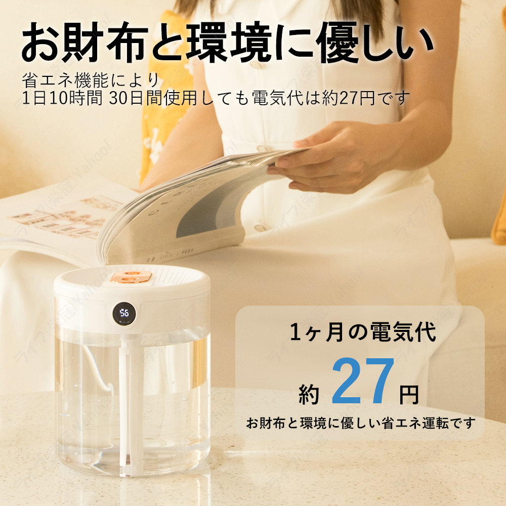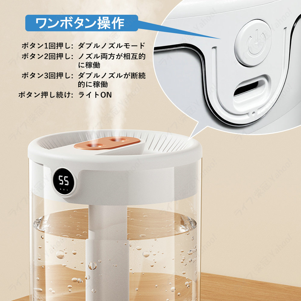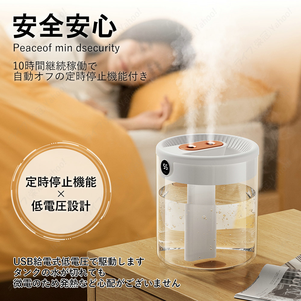 2つノズル 長時間稼働 超細密ミスト 優しいLED