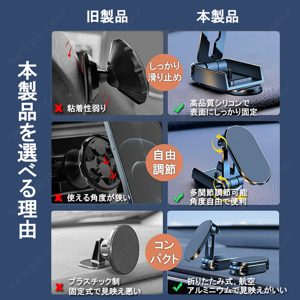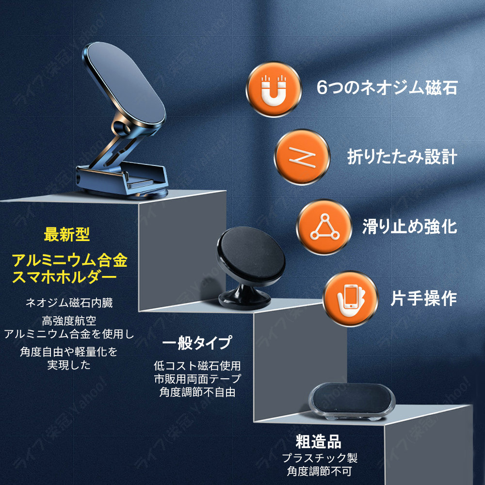 スマホホルダー 車 車載 ホルダー スマホスタンド 磁石 スタンド マグネット 携帯ホルダー スマートフォンホルダー iPhone Android 伸縮 アーム 角度調節 調整