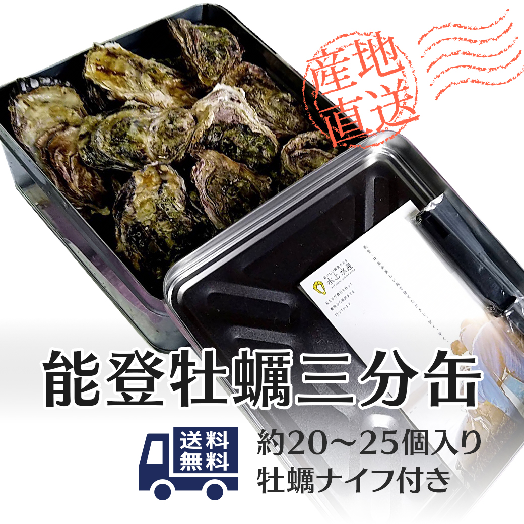 殻付き能登牡蠣三分缶通販(20〜25個入り)2年もの・加熱用・送料込