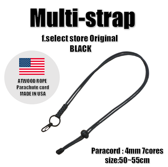 無彩色の中でも使いやすいブラックカラーパラコードのマルチストラップ