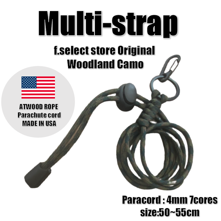 戦闘服でお馴染みの迷彩パターン、ウッドランドカモのパラコードストラップです。