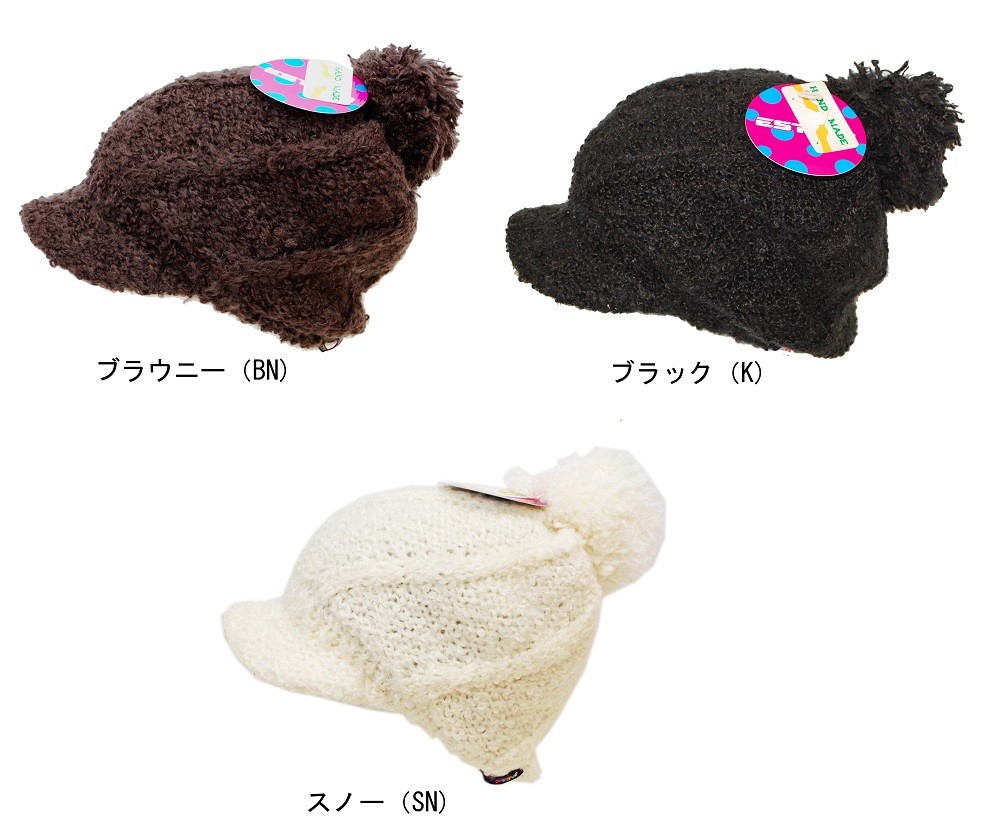 帽子 つば付き キャップ 茶色 黒 白 ホワイト ブラウン 手編み 防風 保温