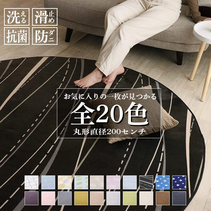 ラグ 円形 丸型 ラグマット 直径 200 カーペット リビングマット オールシーズン おしゃれ 春 夏 北欧 絨毯 抗菌 防ダニ フリーリー