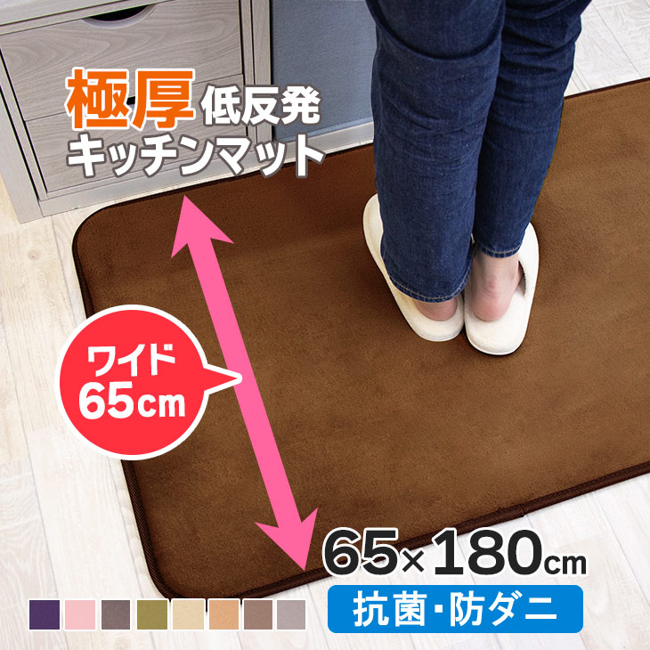 マット 厚手 低反発キッチンマット 極厚25mm 65×180 キッチンマット 滑り止め付 オールシーズン 春 夏 防音 おしゃれ 抗菌 防ダニ フリーリー