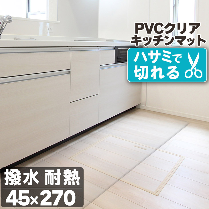 キッチンマット 透明 クリア 45×270cm 拭ける 抗菌 防臭 厚1.5mm おしゃれ 120cm 撥水 水拭き PVC ビニール 水拭き 台所