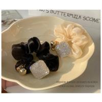 しわ加工のCZダイヤプレート付きシュシュヘアゴム♪
