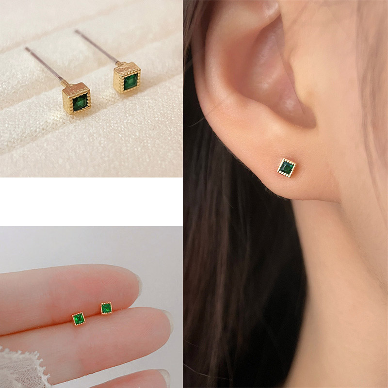 本商品は、エメラルドカラーの極小スクエアピアスです。