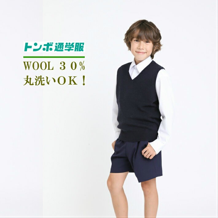 【学生服のトンボ スクールベスト】ウール30% 小学生 ベスト トンボ ニットベスト スクール 通学 紺 冠婚葬祭 丸洗いOK 毛玉になりにくい 丈夫 TOMBOW