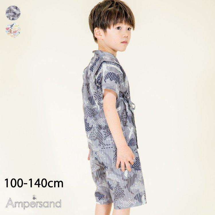 恐竜柄 甚平 男の子 子供 上下セット 綿100% キッズ 子供服 花火大会 お祭り 夕涼み会 部屋着 ルームウエア パジャマ F.O.KIDS エフオーキッズ L375013