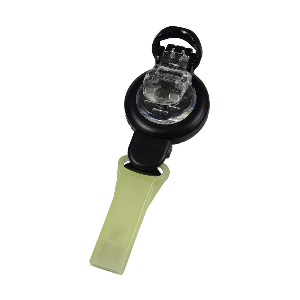 長時間発光するN夜光(ルミノーバ)を本体に使用。360度回転するクリップと最大約70cm伸びるコードリールを内蔵しており、バッグ・帽子・衣類など様々なものに取り付けが可能です。材質に樹脂を使用しているので錆びにくくなっております。 ※ホイッスルの中に水が入ってしまうと音が出にくくなりますが、水を振り出せば音を出すことができます。 |