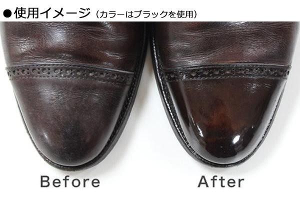 | 初心者の方でも、簡単にハイシャイン仕上げができるよう、ワックス成分に工夫を凝らしました。 【使用方法】 1.お手持ちのクリーナーで前に塗ったクリームを落としてください。 2.少量を布に取り、軽くくもる程度に塗ってください。 3.くもった部分に水を1滴垂らし、柔らかな布で磨いてください。 4.2・3の工程を光沢が出るまで繰り返してください。 【使用上のご注意】 ●つま先やかかと以外には使用しないでください。 ●スエード・ヌバック等の起毛革、その他の特殊な革には使用できません。 ●使用後は必ずキャップをしめて高温・直射日光を避け、お子様の手の届かない所に保管してください。 ●クリームの性質上、容器とクリームの間に空間ができますがご使用には問題ありません。 |