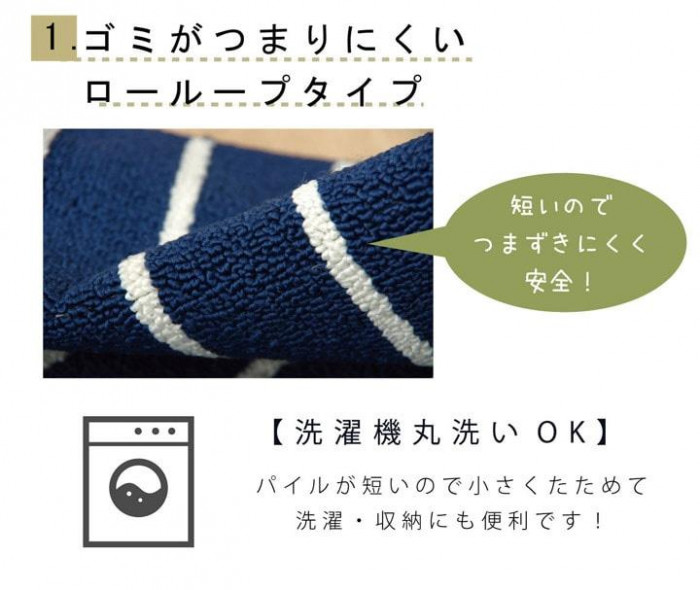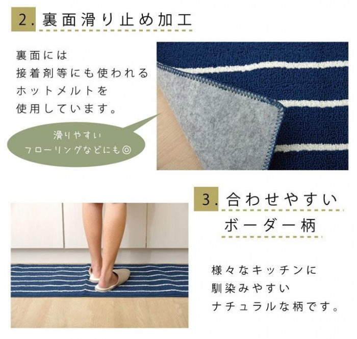 キッチンラグ ボーダー柄 マット ローループタイプ 洗える 台所 すべり止め加工 薄い キッチンマット シンプルボーダー ネイビー
