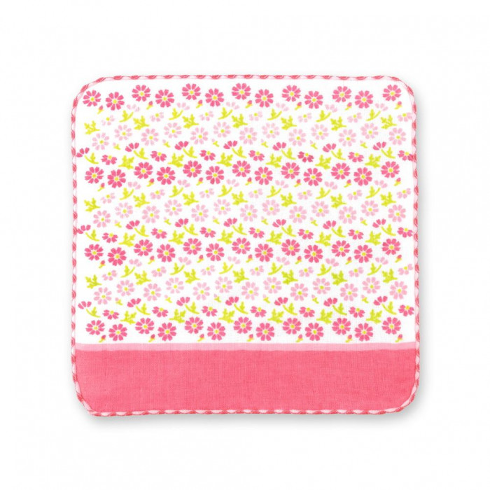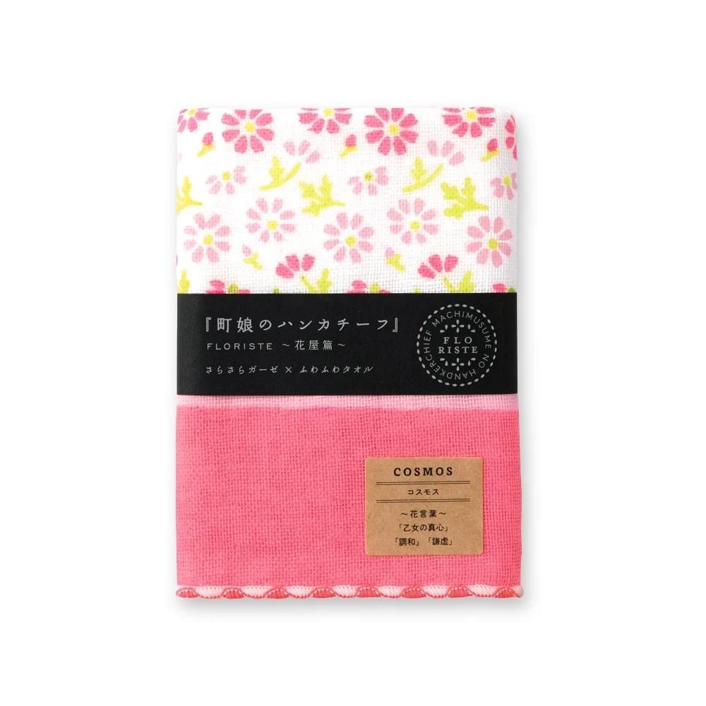 ハンドタオル タオルハンカチ ガーゼ生地 花柄 かわいい おしゃれ カラフル プレゼント 贈り物 ギフト 日本製 町娘のハンカチーフ 花屋篇 コスモス
