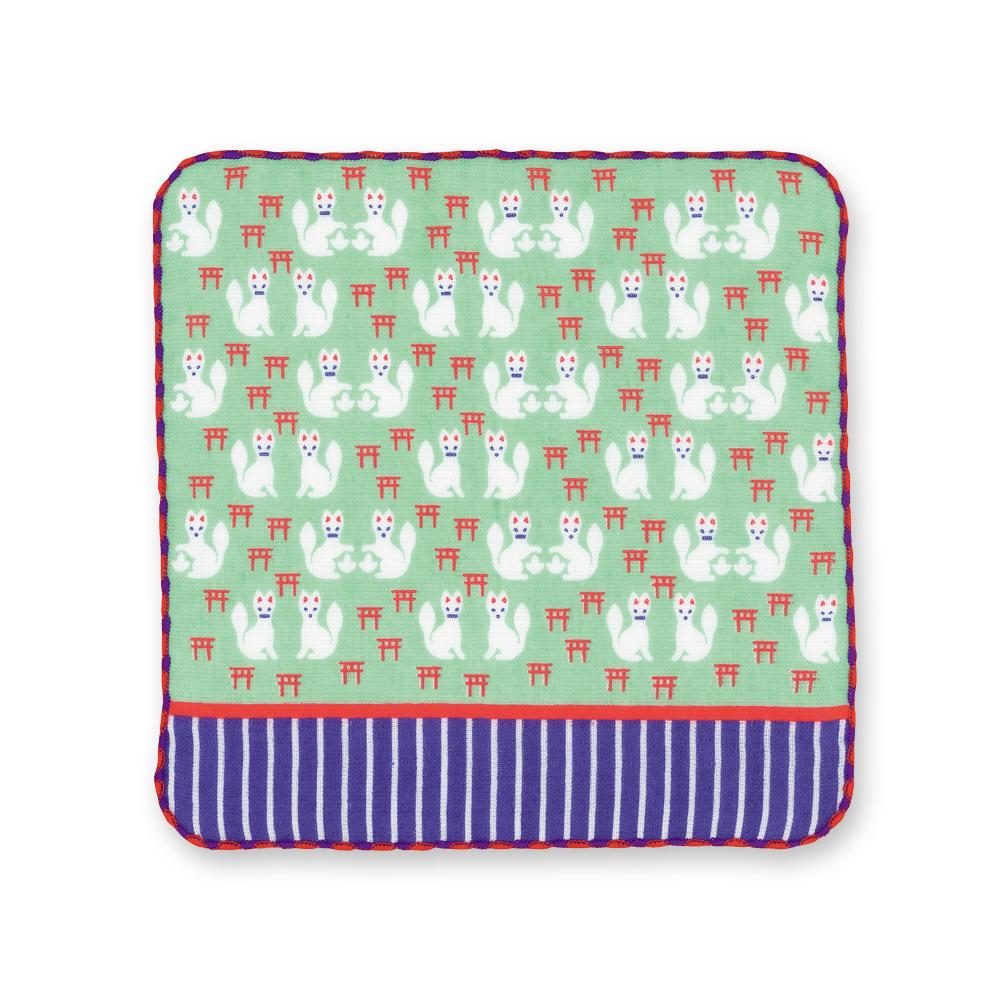 ハンカチ 綿100% コットン 吸水 神社 稲荷 かわいい 子供 幼稚園 小学生 ギフト プレゼント 日本製 町娘のハンカチーフ 和柄 狛狐