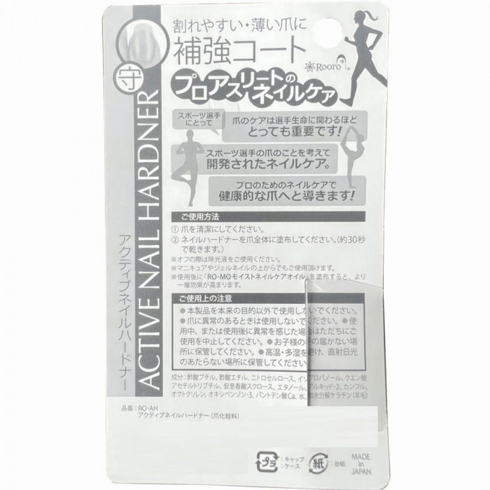 ネイルケア 爪 コーティング 保護 補強 ケラチン配合 速乾 指先 手 マニキュア ジェル 柳瀬 Rooro ローロ アクティブネイル ハードナー