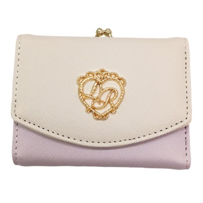 財布 がま口 コンパクトウォレット 三つ折り バイカラー ハートパーツ かわいい 子ども DaisyRico デイジーリコ がま口ミニ財布 パープル